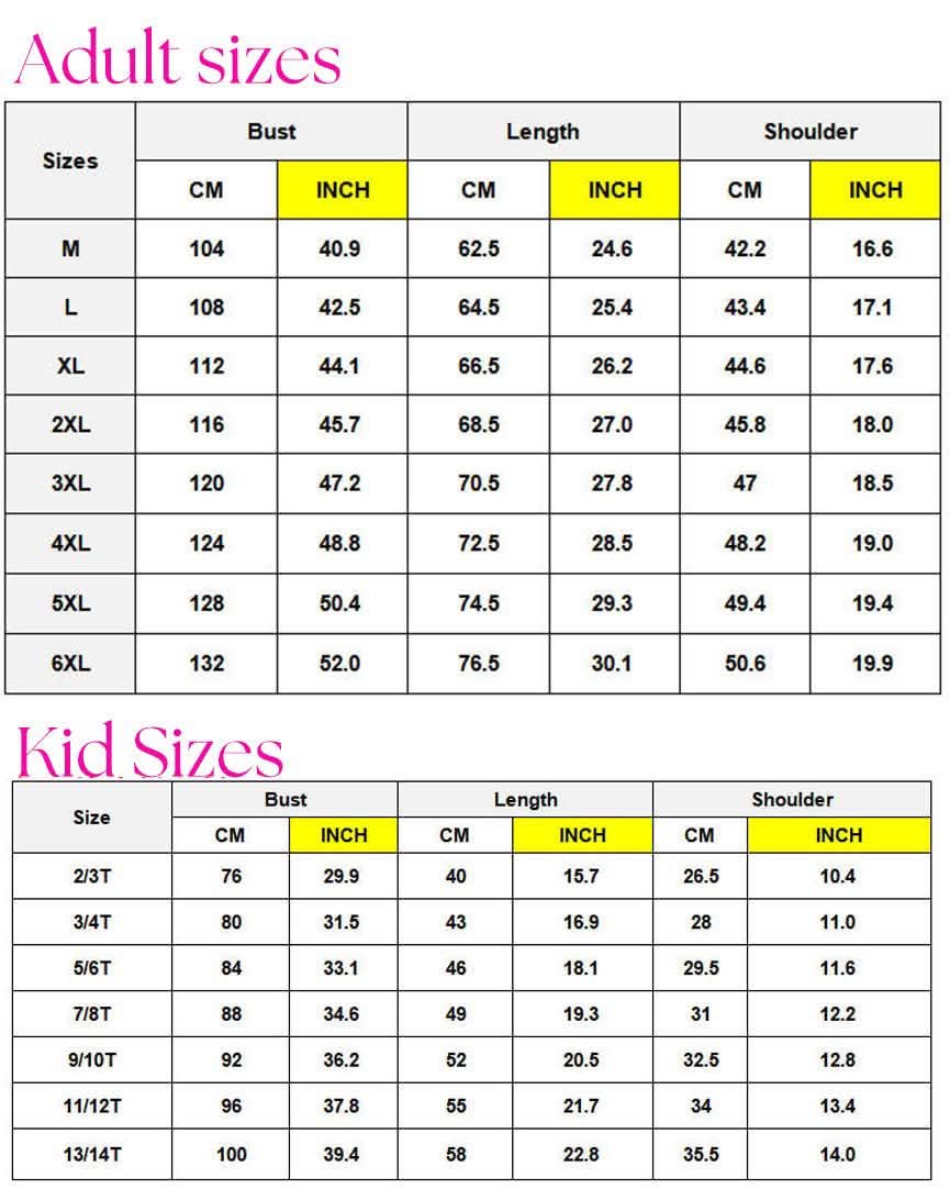 •Mom sizes: M L XL 2XL,3XL, 4XL, 5XL, 6XL
